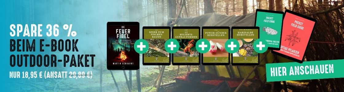 Howdy, ich bin Martin. Auf meinem Blog lernst du die Basics sowie zahlreiche Details zum Leben in der Wildnis. Mit dem Survival-Basic-Kurs bist du auf dein nächstes Abenteuer erstklassig vorbereitet. Das sind 7 Lektionen, die dir Power für die Wildnis geben.